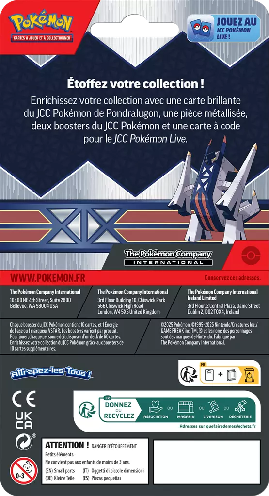 - 1 carte brillante du JCC Pokémon à l’effigie de Pondralugon (180 PV, idéale pour renforcer vos stratégies de combat !)
