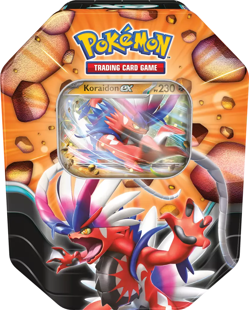 Koraidon ex est un Pokémon emblématique de type Dragon et Combat originaire de la région de Paldea, introduit dans la neuvième génération des jeux Pokémon. Sa forme ex dans le jeu de cartes Pokémon TCG se distingue par un design impressionnant et des capacités puissantes. Ressemblant à un puissant dragon reptilien, Koraidon ex incarne un mélange de force brute et d’agilité, reflétant son double type.