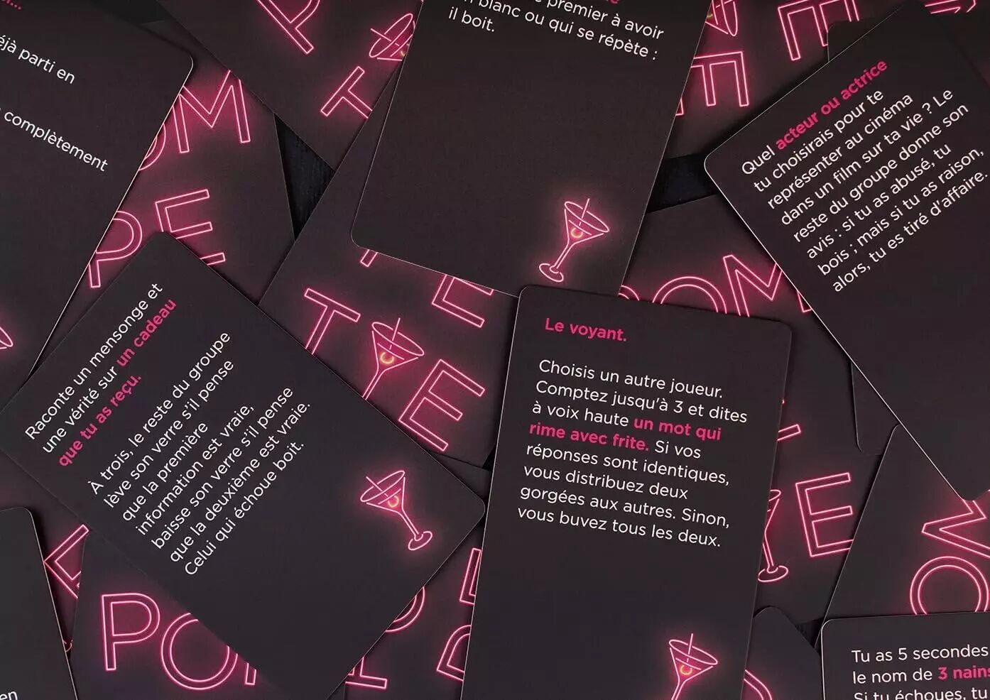 Pompette est le jeu idéal pour ajouter une dose de fun et d'improvisation à vos soirées. Rires garantis, défis délirants et moments de pure convivialité, tout cela accompagné de vos boissons préférées !