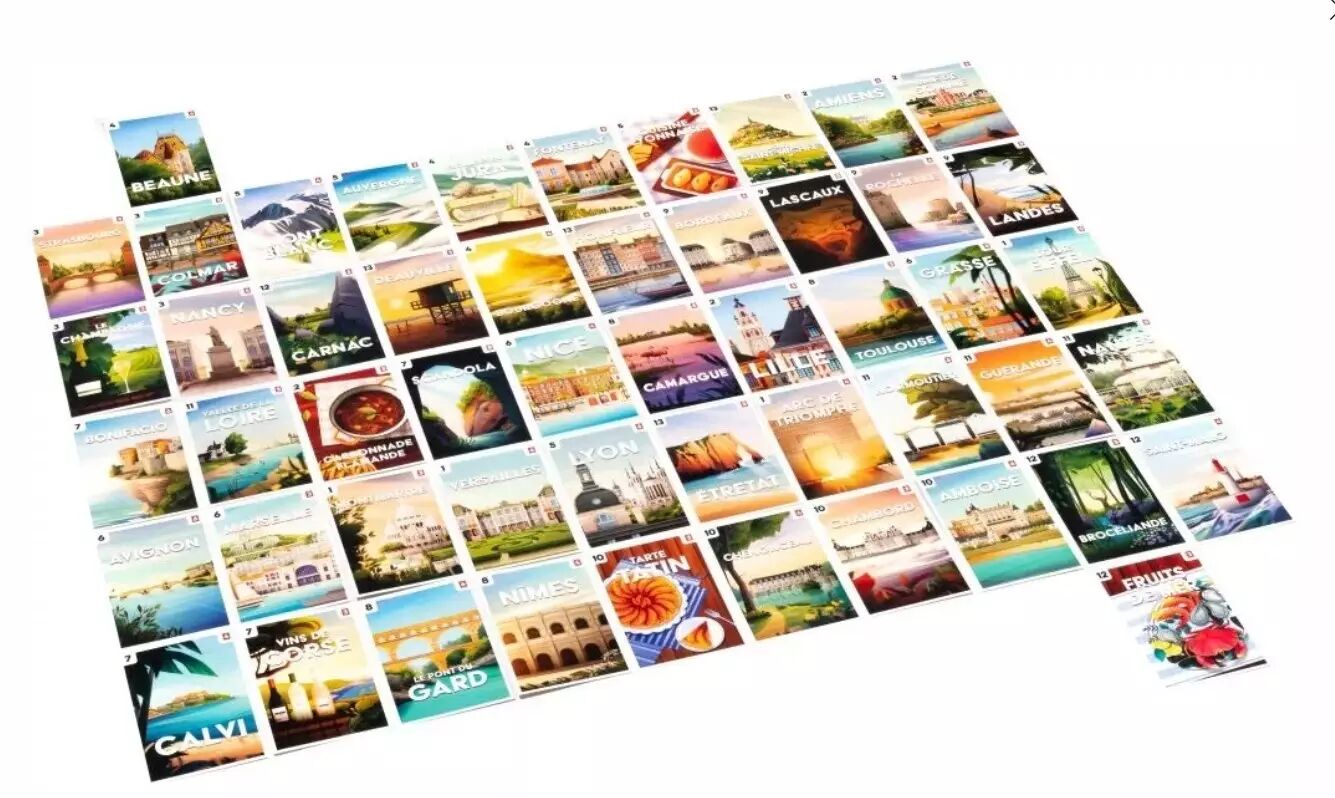 Chaque carte postale est magnifiquement illustrée par Crocotame, capturant l'essence des régions françaises et t'immergeant dans un voyage visuel enchanteur. La variété des cartes itinéraires, objectifs et configurations possibles assure que chaque partie raconte une nouvelle aventure unique à travers l'Hexagone.
