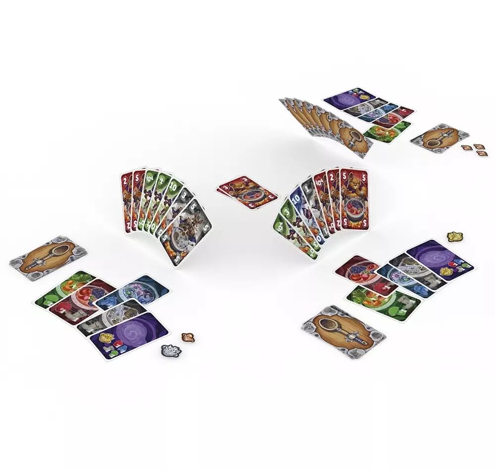 Accessible dès 8 ans, Potage Sauvage est un excellent premier jeu de pli à découvrir en famille. On y retrouve l’efficacité et la malice des grands titres de Reiner Knizia, et le jeu propose également une variante pour plus de diversité. Aussi original que palpitant, Potage Sauvage est une excellente opportunité de découvrir toute la richesse de l’univers des jeux de plis.