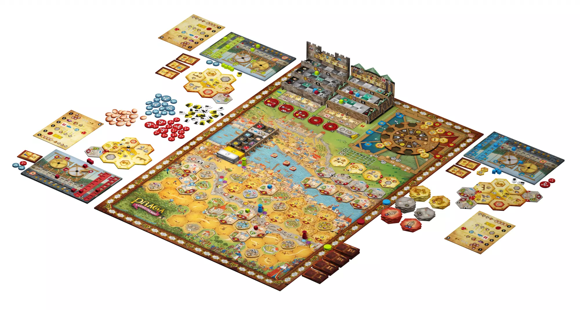 Dans le jeu Praga Caput Regni, les joueurs jouent le rôle de citoyens riches en organisant divers projets de construction dans la Prague médiévale.