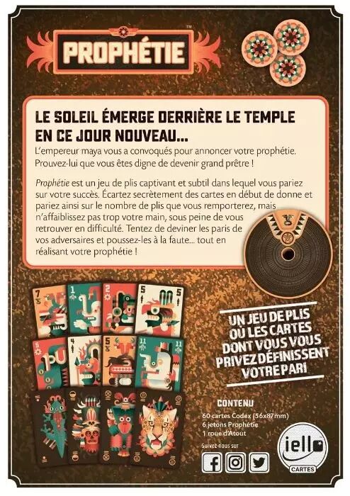 Prophétie est un jeu de plis subtil et retors qui vous invite à parier sur le nombre de plis que vous pensez remporter. Parviendrez-vous à modifier votre main en conséquence pour voir le destin s'accomplir ?