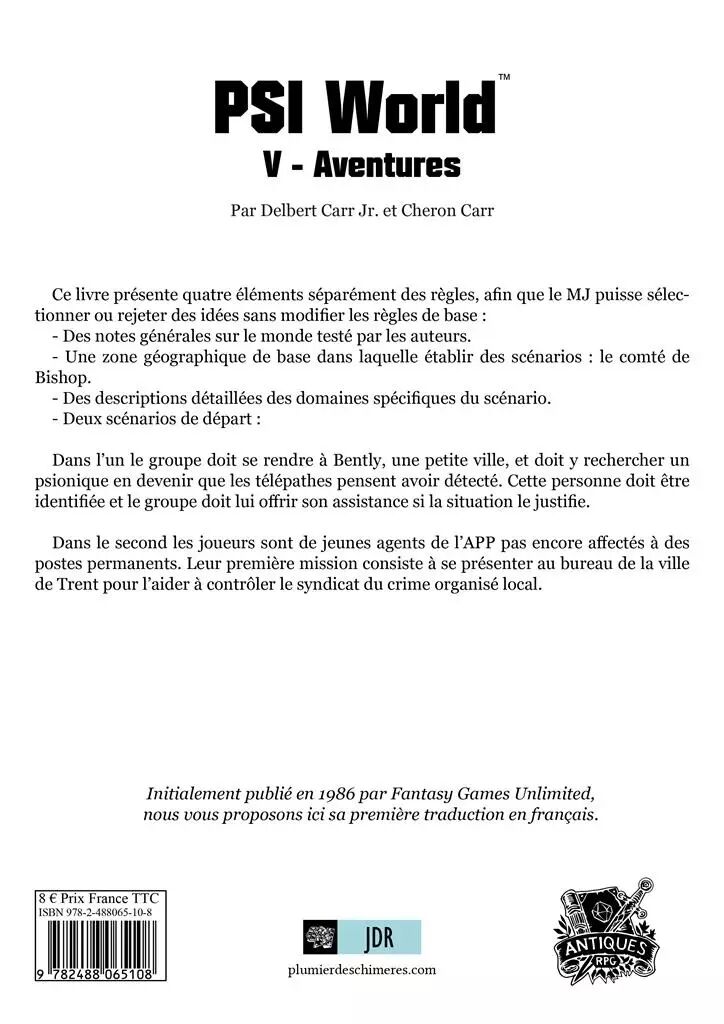 Dans l’un le groupe doit se rendre à Bently, une petite ville, et doit y rechercher un psionique en devenir que les télépathes pensent avoir détecté. Cette personne doit être identifiée et le groupe doit lui offrir son assistance si la situation le justifie.