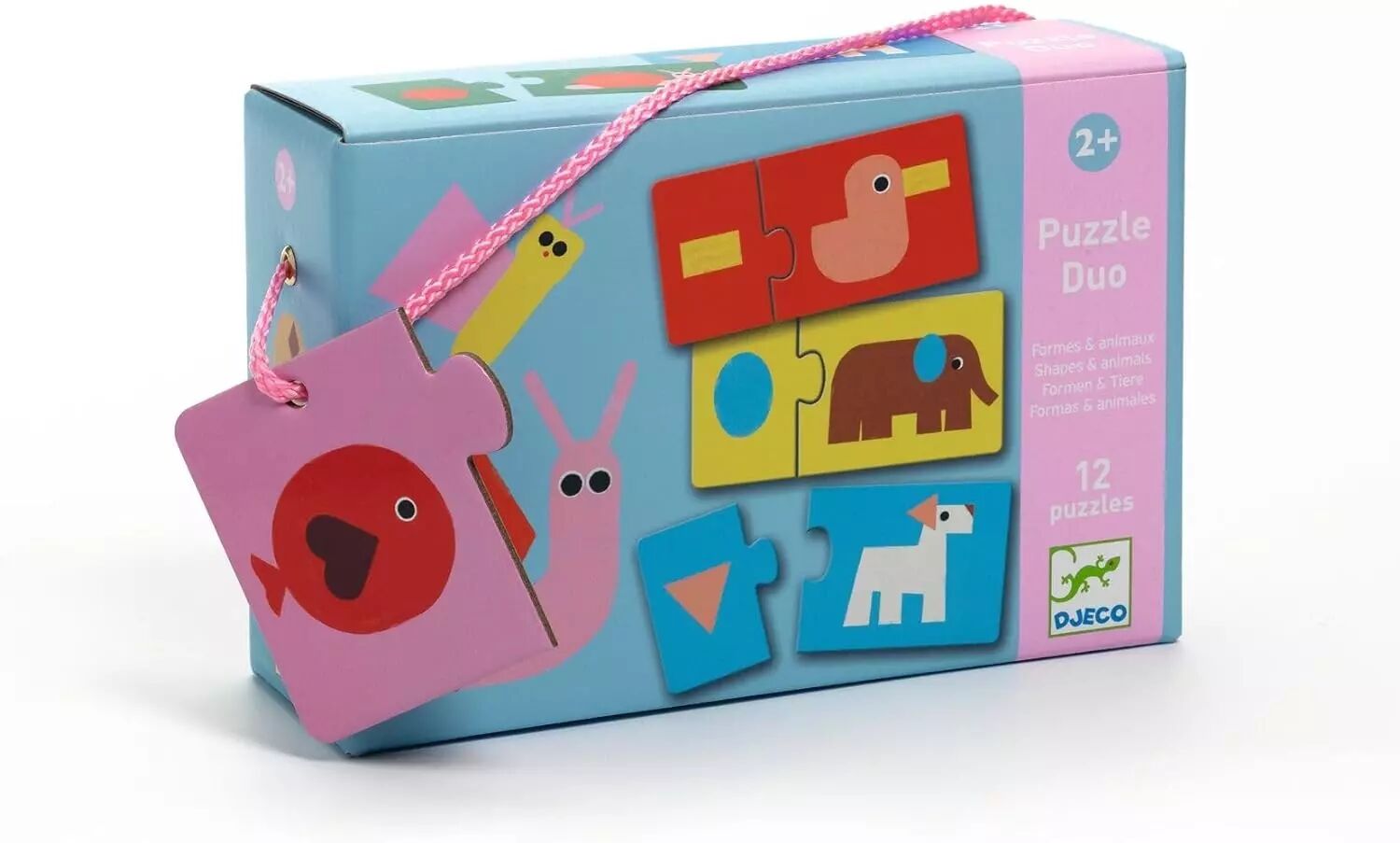 Découvrez le puzzle duo Animaux et formes de Djeco, un puzzle éducatif pour les enfants dès 2 ans. Un premier jeu d'association simple et ludique avec des animaux et leur forme.