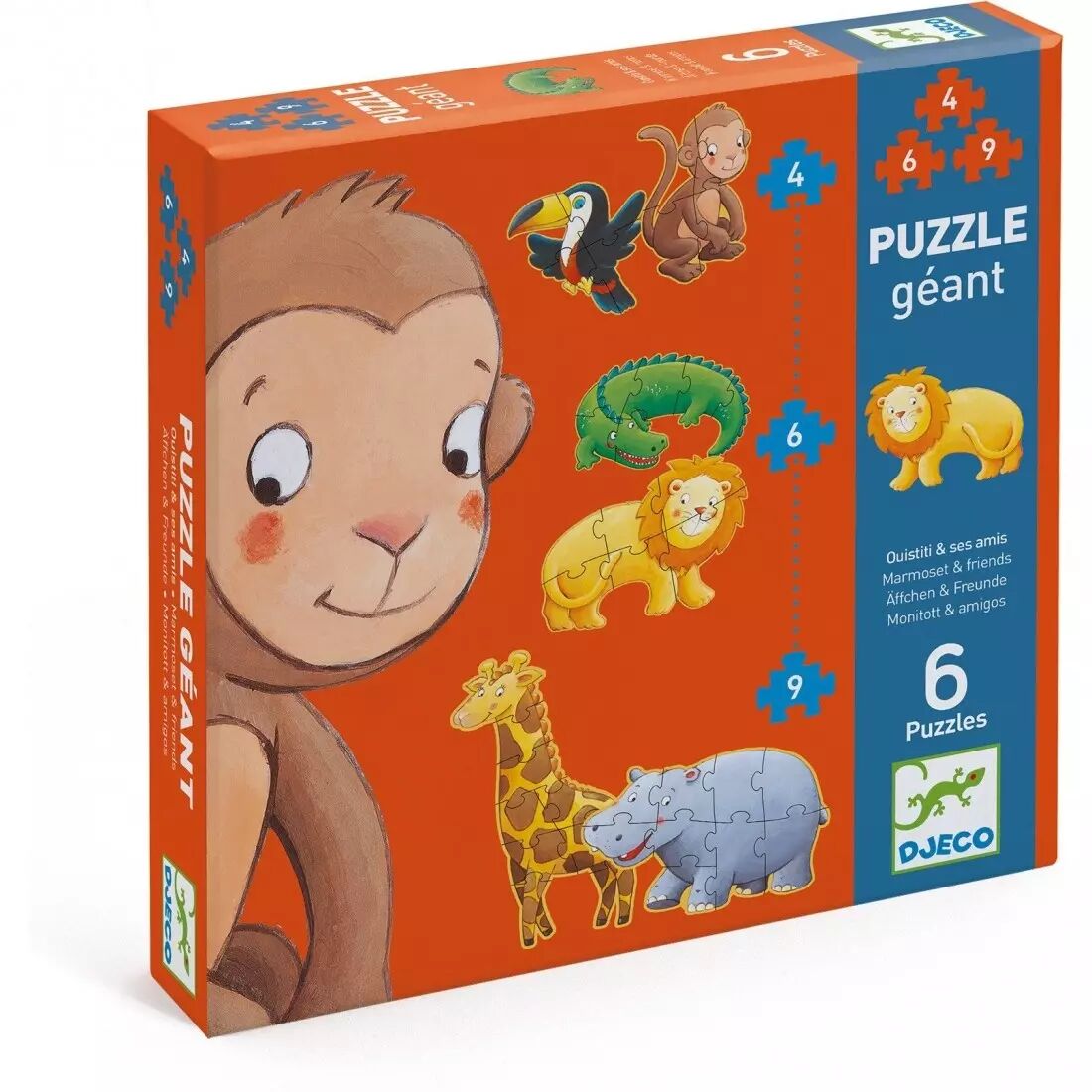 Découvrez le puzzle géant Ouistiti et ses amis de Djeco, des puzzles spécialement conçus pour les plus petits à partir de 2 ans.