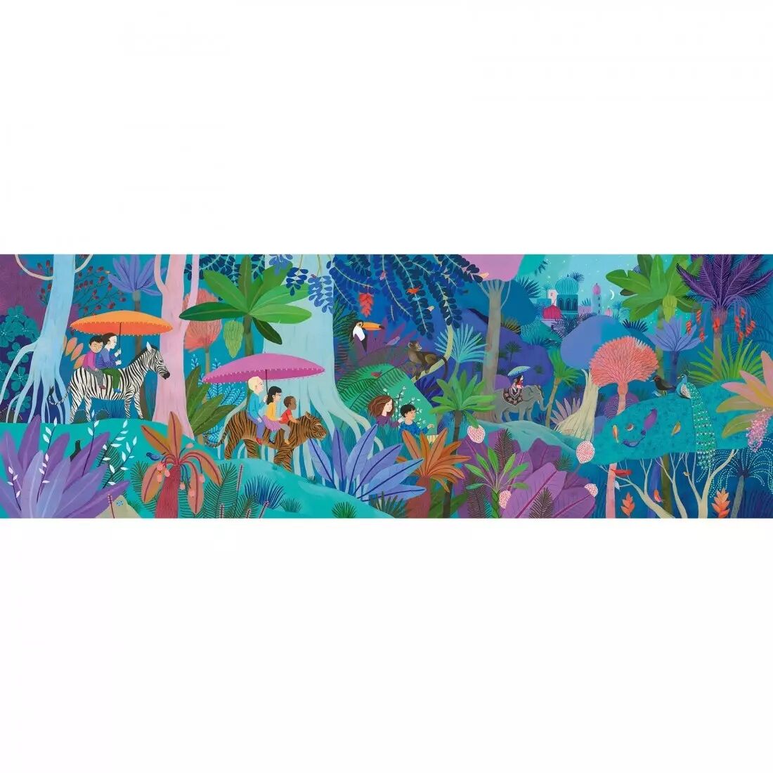 Children's walk est un puzzle au format rectangulaire qui sera très apprécié par les amateurs de peinture et petits artistes. Dès 6 ans, votre enfant partira en exploration dans une jungle colorée sur le dos d'animaux sauvages : un tigre, un zèbre ou un éléphant. L'artiste propose dans ce puzzle au format inédit une illustration douce et colorée en toute harmonie avec la nature.