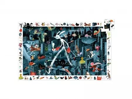 Réf. : DJ07461 Un puzzle de 200 pièces pour découvrir une ville de nuit, où voltigent de drôles de personnages.