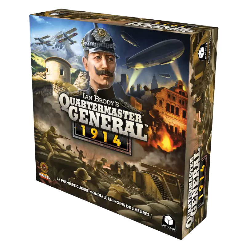 Quartermaster General : 1914 est un jeu au rythme effréné qui oppose les puissances centrales d'Allemagne, d'Autriche-Hongrie et de l'Empire ottoman aux puissances de l'Entente de Russie, de France, d'Italie, du Royaume-Uni et des États-Unis. Basé sur le système populaire Quartermaster General, ce jeu de guerre piloté par des cartes reflète l'intrigue militaire, économique et politique de l'époque.
