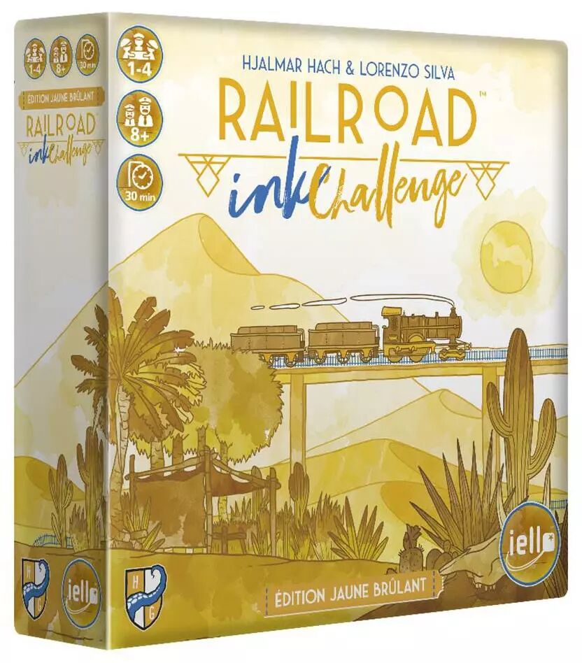 Railroad Ink Challenge existe en deux versions, chacune comprenant une extension avec un jeu de dés supplémentaire qui ajoute de nouvelles règles spéciales à vos parties. Utilisez des oasis pour protéger vos cactus du climat aride du désert dans l'édition Jaune !