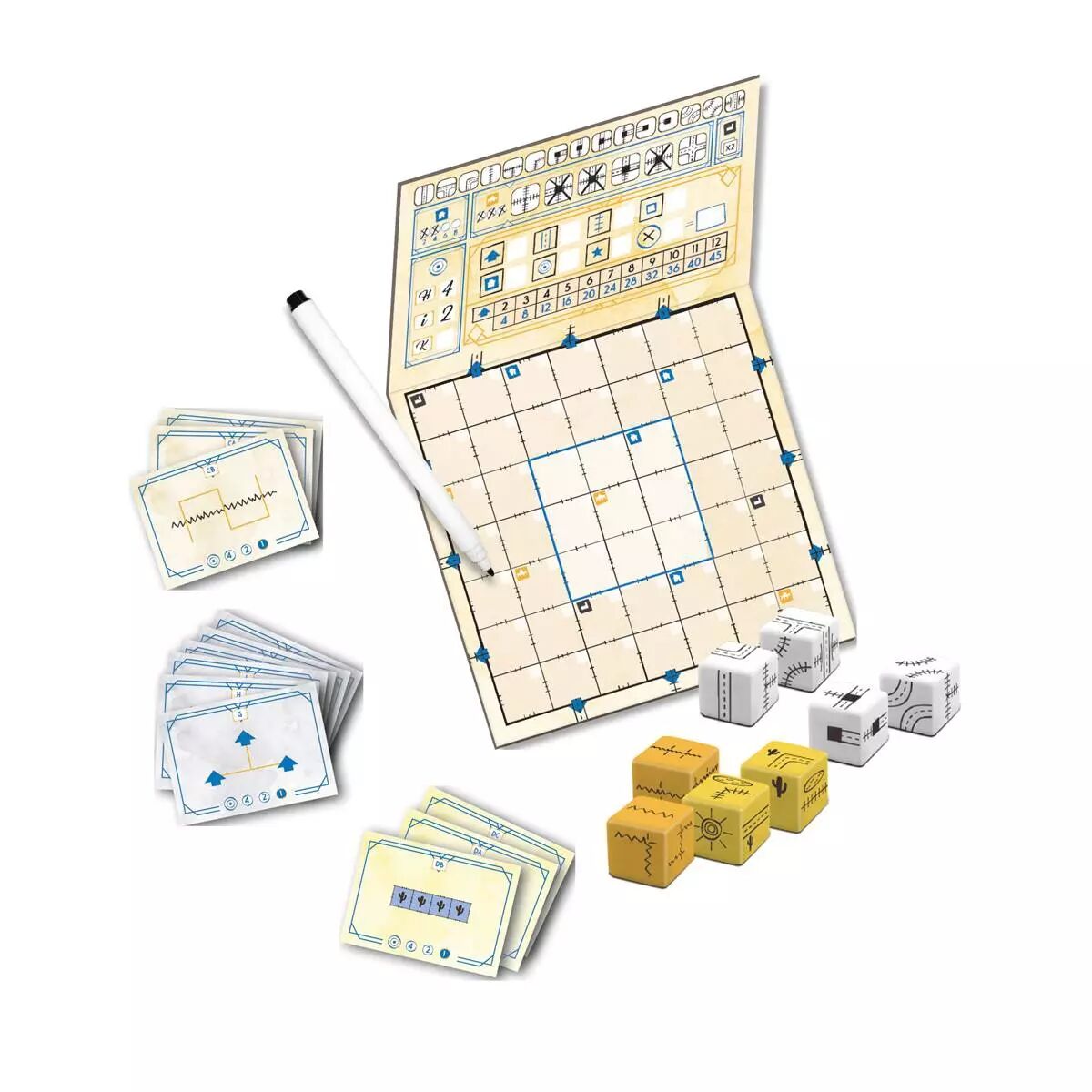 Prenez un plateau et un marqueur effaçable à sec, et préparez-vous à atteindre le nirvana du réseau ! Lancez les dés et dessinez les routes pour relier les sorties autour de votre plateau. Développez votre réseau avec des chemins de fer, des autoroutes et des gares pour accumuler des points, mais vous serez pénalisé pour toute connexion non terminée, alors planifiez bien !