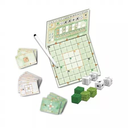 Prenez un plateau et un marqueur effaçable à sec, et préparez-vous à atteindre le nirvana du réseau ! Lancez les dés et dessinez les routes pour relier les sorties autour de votre plateau. Développez votre réseau avec des chemins de fer, des autoroutes et des gares pour accumuler des points, mais vous serez pénalisé pour toute connexion non terminée, alors planifiez bien !