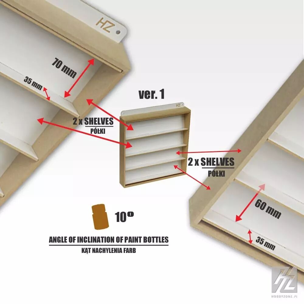 4 étagères pour pots de peinture d’un diamètre ~36 mm (convient aux marques courantes)