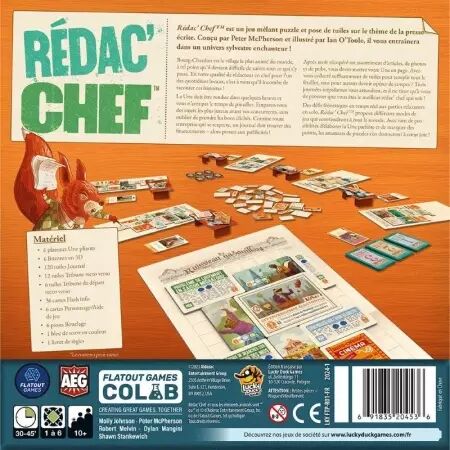 Avec Redac'Chef, vivez l'urgence d'une salle de rédaction où chaque seconde compte. Vous avez quatre minutes par manche pour sélectionner et placer vos tuiles – articles, photos et pubs – afin de composer la une parfaite. Mais attention, vous ne pouvez pas tout mettre n’importe où ! Les articles de même couleur doivent être distanciés, tandis que les publicités ne peuvent pas se toucher. La tension monte à chaque manche et seule une stratégie bien pensée vous permettra de triompher.