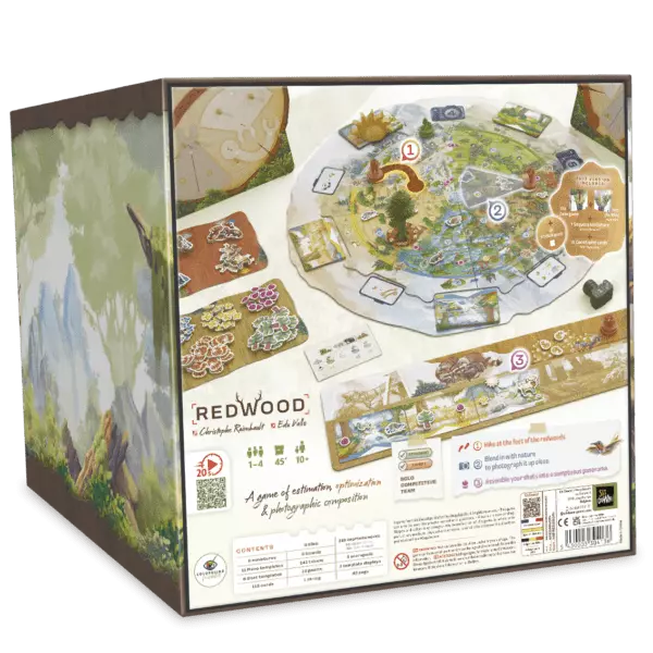 REDWOOD vous transportera au cœur de la nature sauvage. Équipé de votre appareil photo, partez à la recherche des meilleurs angles de vue pour immortaliser sur papier glacé les animaux dans leur environnement naturel. Utilisez les différents gabarits de déplacement et d’angle de vue afin de capturer des objectifs et marquer des points. Votre but? Réaliser le meilleur panorama et l’emporter sur vos adversaires, en mode compétitif (mais un mode solo et un mode en équipes sont aussi disponibles).