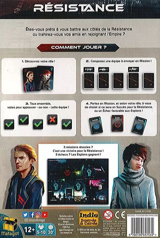 Réf. : MATRES001753 L'Empire doit tomber. Nous sommes la Résistance ! Et la Résistance doit vaincre. Mais des espions ont infiltré nos rangs, prêts à tout pour saboter nos missions contre l'Empire. Il faut les démasquer. Pour cela, il faut choisir les bons agents à envoyer en mission afin de cumuler les succès !
