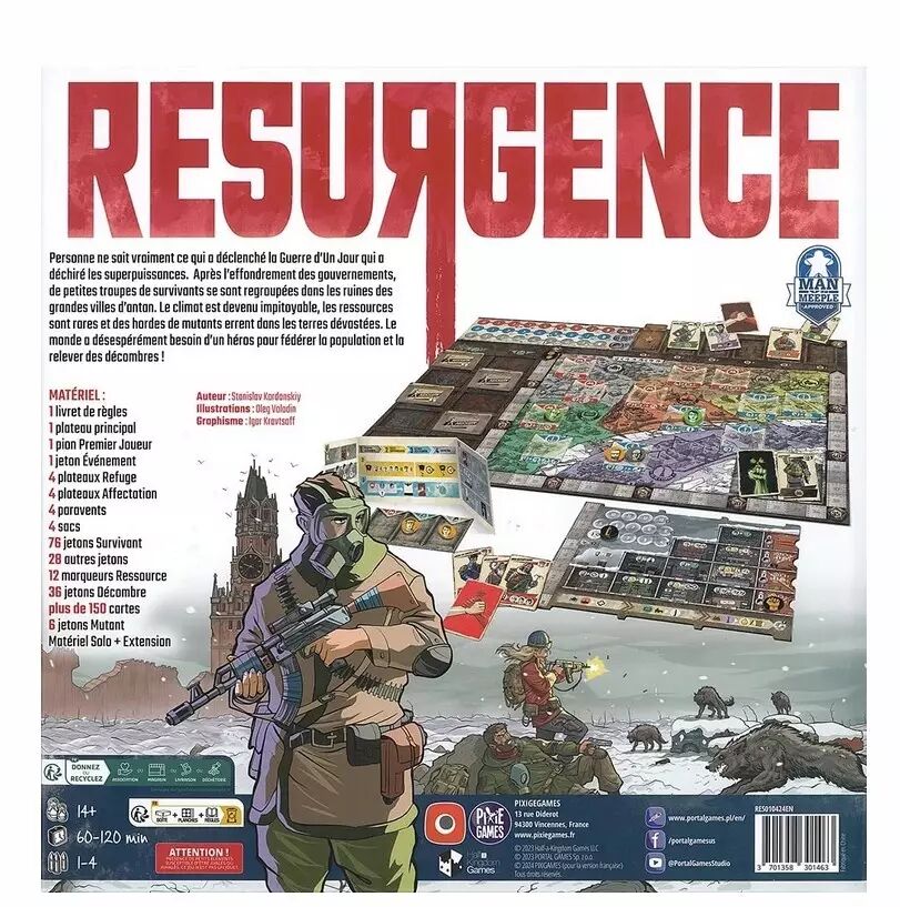 Avec ses nombreux objectifs, événements et cartes missions, Resurgence offre une expérience renouvelée à chaque partie. Un mode solo complet permet de s’entraîner ou de relever des défis en solo, tandis que la configuration jusqu’à 4 joueurs garantit des affrontements intenses en groupe. Le jeu est compatible avec d’éventuelles extensions, et sa durée modulable (90 à 120 minutes) s’adapte aussi bien aux longues soirées stratégiques qu’aux sessions plus courtes.