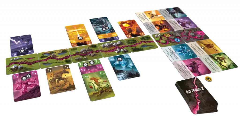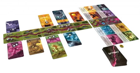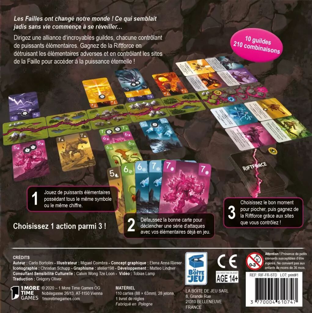 Invoquez et activez vos cartes de symbole ou de valeur identiques. Gagnez de la Riftforce en détruisant les élémentaires adverses et en contrôlant les sites de la Faille !