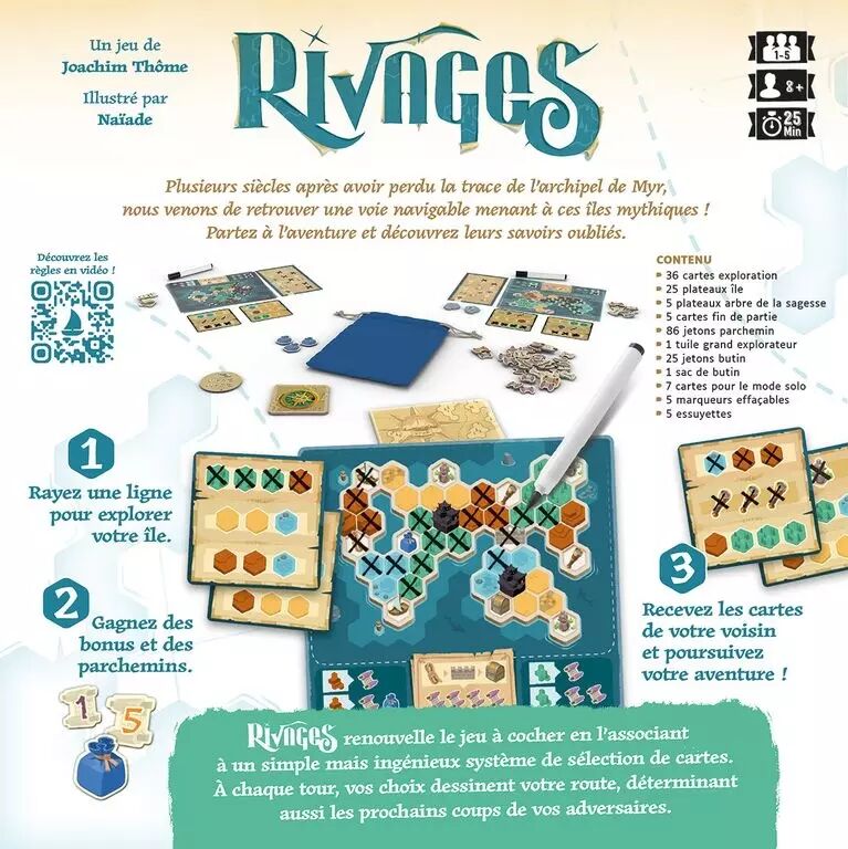 Rivages est un jeu compétitif où vous devrez rivaliser avec vos adversaires pour explorer les îles les plus lucratives et accomplir les quêtes les plus difficiles. Utilisez vos stratégies et votre ruse pour les devancer et devenir le maître des îles.