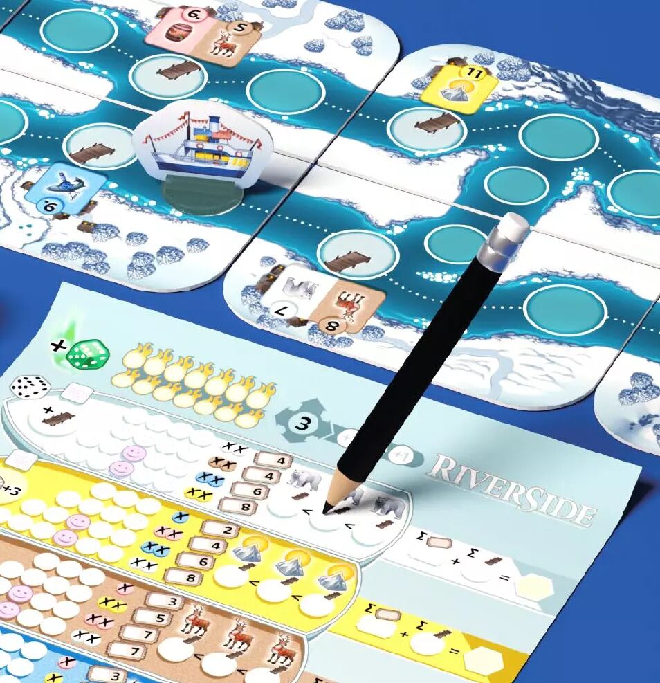 Vous pouvez planifier à l'avance, mais attention, les dés peuvent vous obliger à changer vos plans. Vous commencez chaque tour en lançant des dés dans une réserve commune. Simultanément, chaque joueur choisit un dé d'une couleur spécifique (sans le prendre physiquement) et remplit des sièges sur le bateau guide correspondant sur sa propre feuille de joueur.