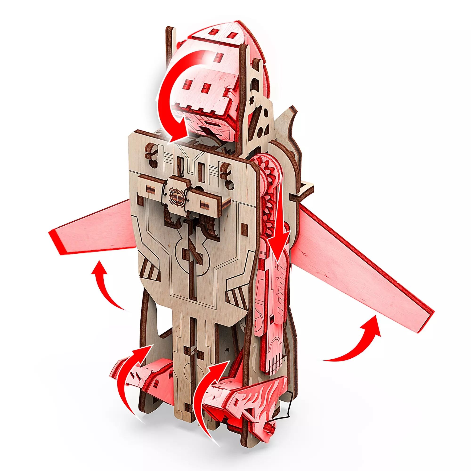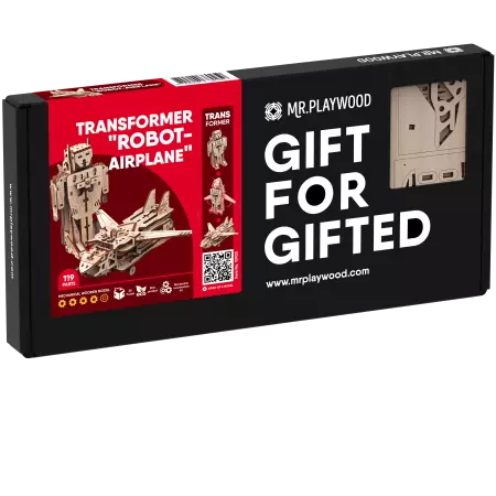 Assemblez ce robot en bois; une fois assemblé, transformez le en avion autant que vous le souhaitez !