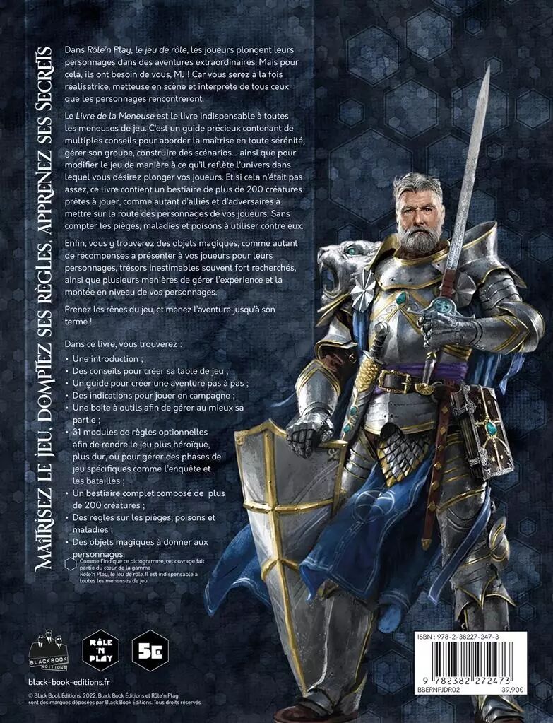 Le Livre de la Meneuse est le livre indispensable à toutes les meneuses de jeu. C’est un guide précieux contenant de multiples conseils pour aborder la maîtrise en toute sérénité, gérer son groupe, construire des scénarios… ainsi que pour modifier le jeu de manière à ce qu’il reflète l’univers dans lequel vous désirez plonger vos joueurs. Et si cela n’était pas assez, ce livre contient un bestiaire de plus de 200 créatures prêtes à jouer, comme autant d’alliés et d’adversaires à mettre sur la route des personnages de vos joueurs. Sans compter les pièges, maladies et poisons à utiliser contre eux.