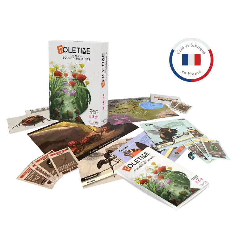 Dans Roletime, plongez dans la Plaine des Bourdonnements, un monde fantastique dédié aux insectes. Vous aurez la possibilité d'incarner des héros insectoïdes, chacun doté de pouvoirs spéciaux et d'une personnalité unique. Affrontez des dangers, résolvez des énigmes, explorez des lieux mystérieux et vivez des histoires passionnantes. Le jeu se déroule en plusieurs tours, où chaque joueur décrit les actions de son personnage et lance le dé pour déterminer le succès ou l'échec. Le maître de jeu se charge de raconter l'histoire, de donner vie aux personnages non-joueurs et de gérer les règles.