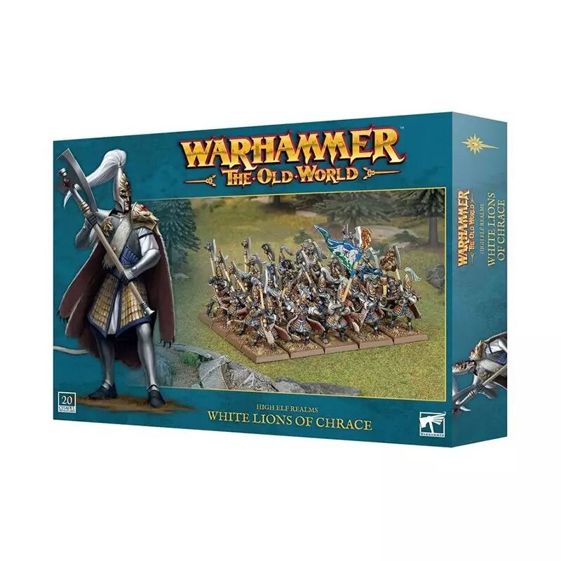Ce kit en plastique permet d'assembler 20 Lions Blancs de Chrace, une unité d'infanterie d'élite pour vos armées des Royaumes Hauts Elfes lors des parties de Warhammer: The Old World. Ils peuvent être assemblés en une grande unité ou en deux petites unités de 10 guerriers, avec un champion, un porte-étendard et un musicien pour chacune. Le champion dispose de plusieurs options de têtes et de bras, et le porte-étendard dispose de deux choix de bannière, ce qui permet de personnaliser vos unités.