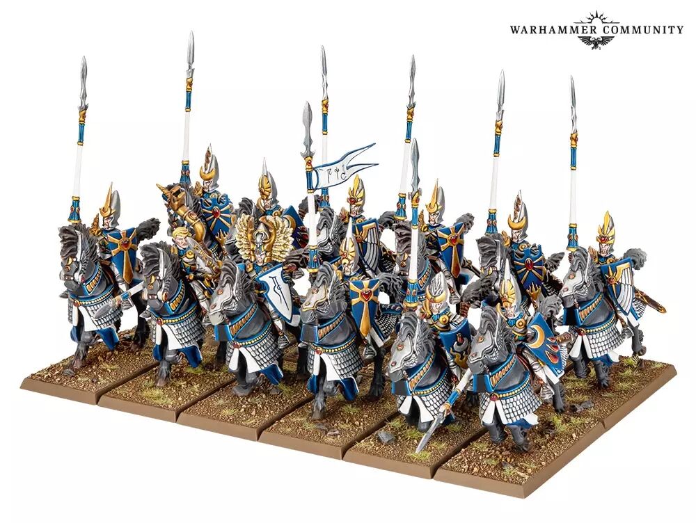 Ce kit en plastique permet d'assembler 12 Heaumes d'Argent, une cavalerie lourde d'élite pour vos armées des Royaumes Hauts Elfes dans les parties de Warhammer: The Old World. Ces puissants guerriers montés et leurs chevaux sont protégés par des écailles polies, avec de hauts boucliers et des lances de joute pour aller renverser leurs proies à terre. Ils sont idéaux pour mener les charges et fracasser les lignes ennemies.