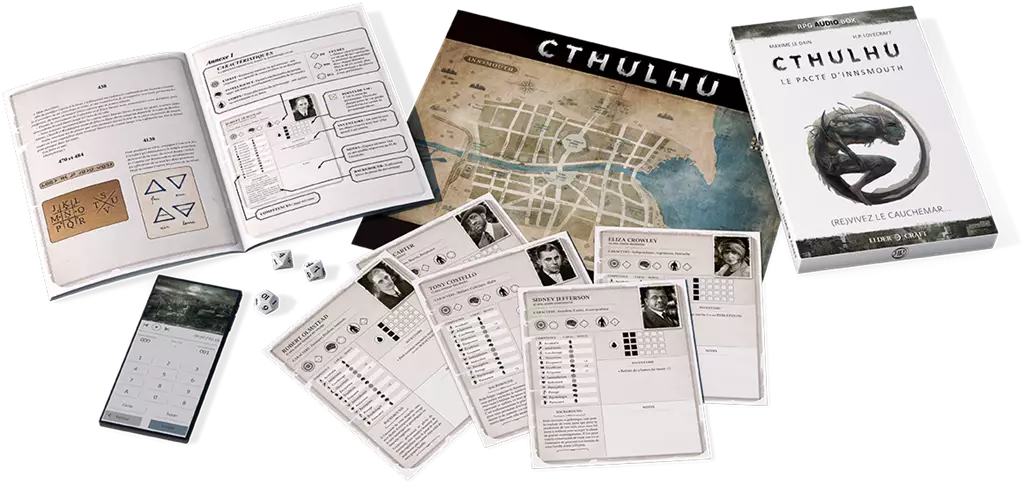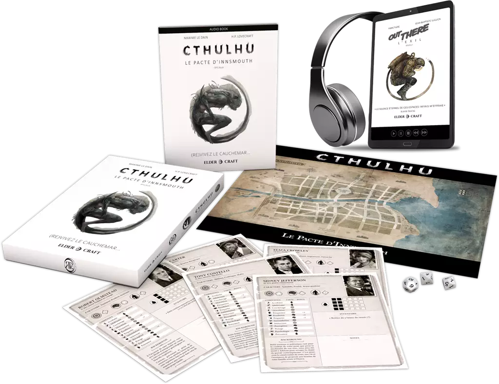 Hommage créatif et respectueux rendu au maître de l’indicible par son traducteur contemporain Maxime Le Dain, Le Pacte d’ Innsmouth est une œuvre que tout fan de Lovecraft se doit d’expérimenter, et cette RPG Audio BOX est certainement la manière la plus immersive et originale de le faire.