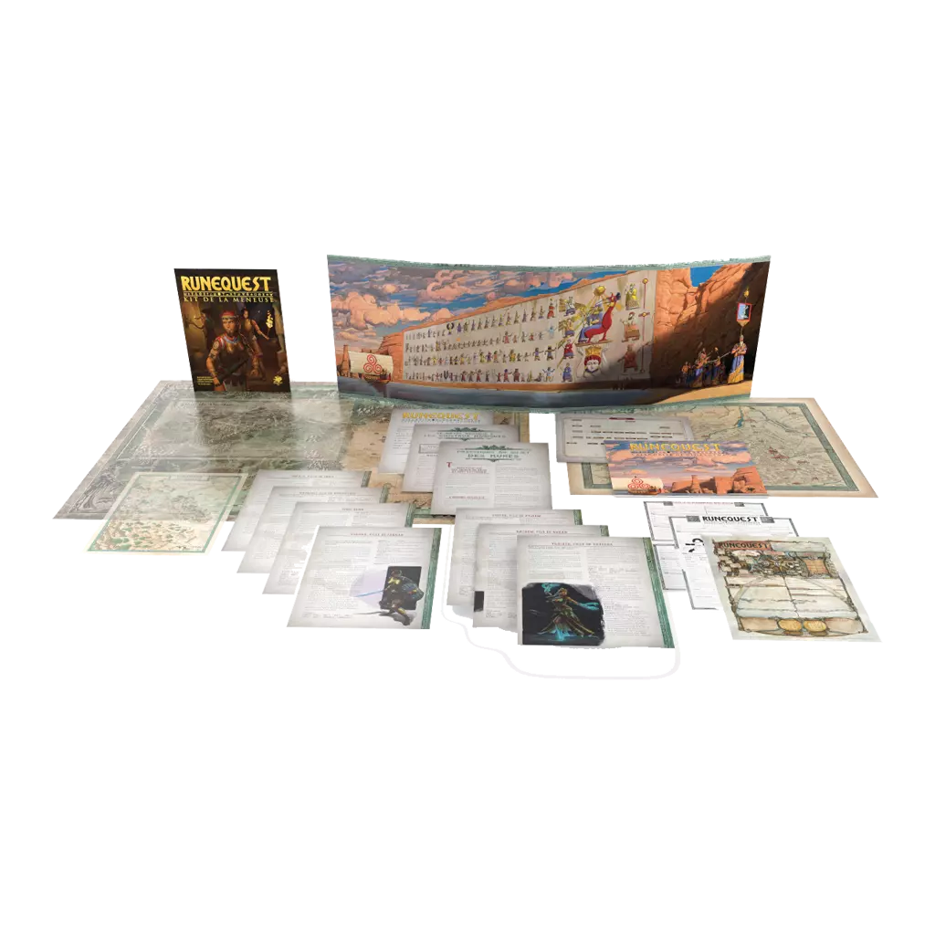Le livret de l’aventurier est une feuille de personnage sous format livret de 20 pages, avec de nombreuses tables utiles au joueur, une carte de Glorantha, etc.