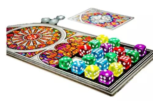 Réf. : MATSAG001514 Vous êtes un artiste en concurrence avec d'autres artistes pour créer le plus beau vitrail de la Sagrada Familia. Vos pièces de verre sont représentées par des dés, qui ont une couleur et une nuance. Après 10 rounds, les joueurs marquent des points en fonction d'objectifs publics et privés !