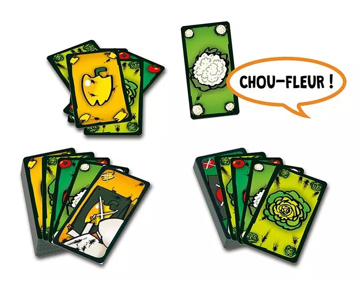 Les joueurs préparent le plus vite possible une salade composée en posant leurs cartes "Légumes" à tour de rôle. Le problème, c'est qu'ils doivent également annoncer le nom du légume correspondant aussi vite qu'ils les posent, sans mettre les pieds dans le plat. Attention aux cartes spéciales qui ajoutent du piment à la Salade !