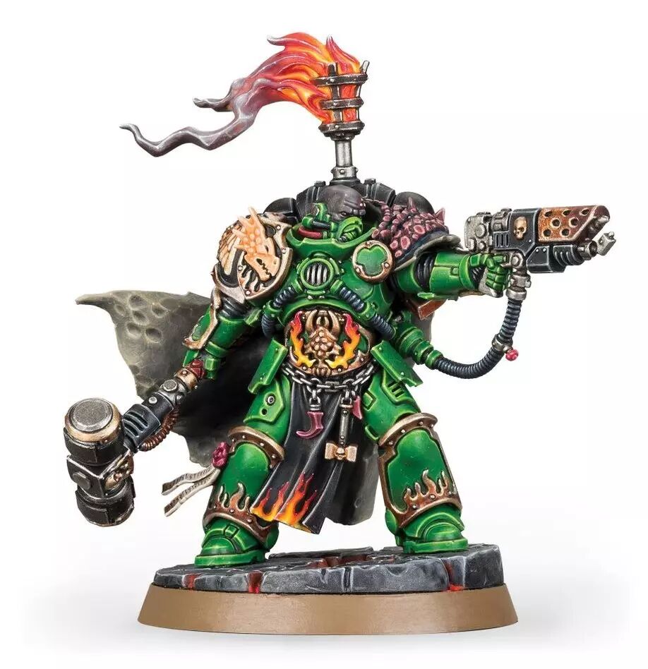 Adrax Agatone est l'enclume sur laquelle se brisent les ennemis des Salamanders. Quand il tient la ligne, les Salamanders se battent avec une détermination irrésistible. La cape en peau de drac arridienne d'Agatone le protège de tout sauf des plus terribles armes, tandis qu'il immole l'ennemi avec Drakkis – son chef-d'œuvre de lance-flammes de poing – et porte des coups fracassants avec son marteau Thunder, Malleus Noctum.