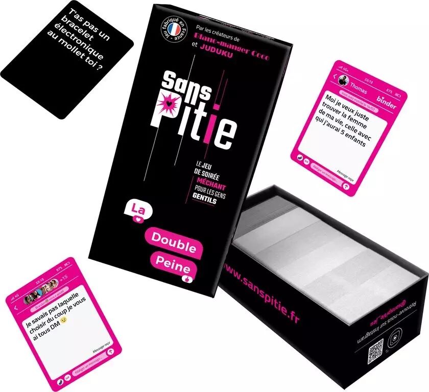 La double peine, c’est 600 nouvelles cartes qui font la part belle aux applications de rencontres, aux premiers amours ou aux coups d’un soir le tout dans la rigolade, la dérision et la convivialité !