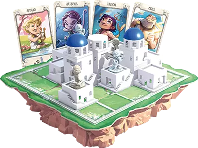 À chaque tour, vous devez en déplacer un et construire sur l'une des cases adjacentes un élément d'immeuble. Regardez une ville s'élever rapidement sur le plateau, à l'image de l'île de Santorin !