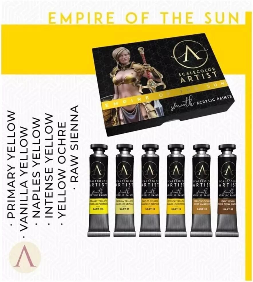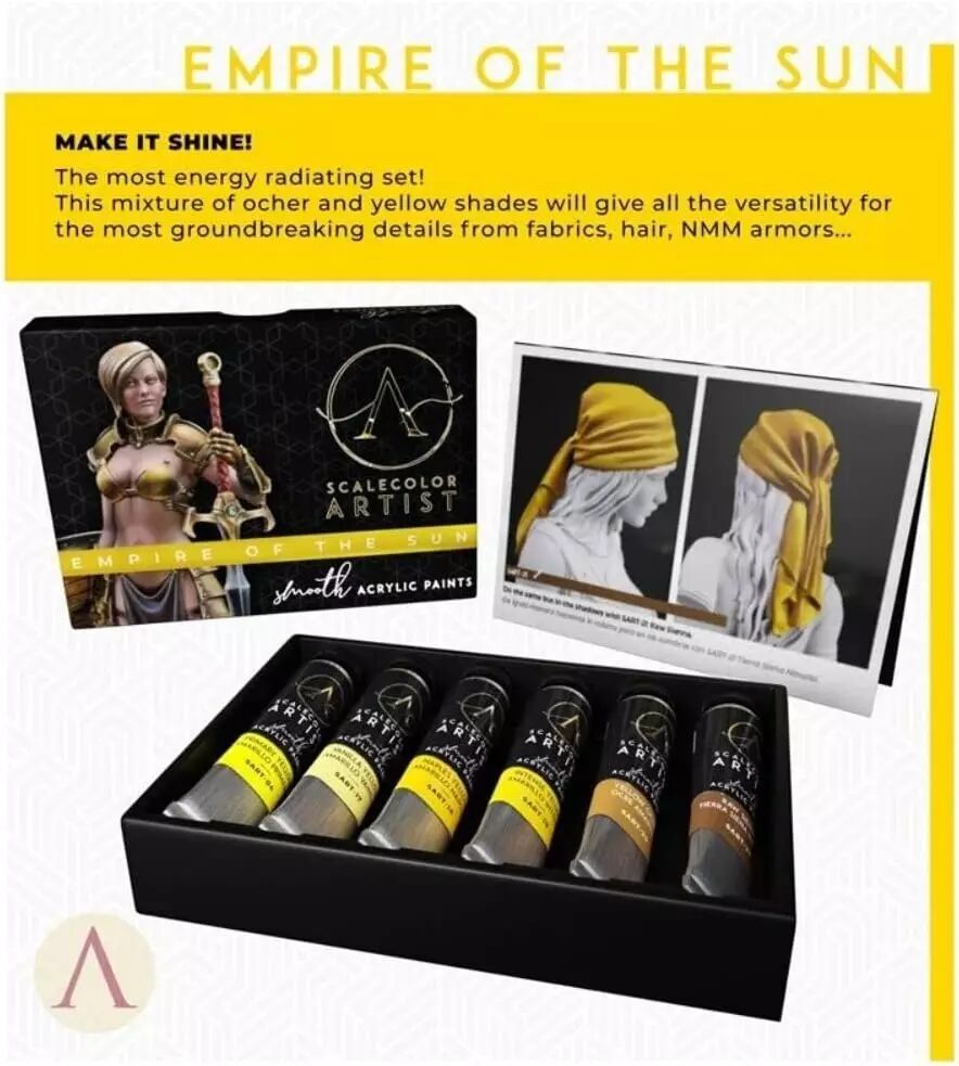 Réf. : S75-SSAR-04 La gamme Artist Paints de Scale 75 se distingue déjà par ses qualités professionnelles, mais le Empire of the Sun Set incarne l'excellence et la polyvalence pour les amateurs de modélisme et de peintures sur figurines. Ce coffret réunit six tubes de 20ml aux teintes éclatantes, spécialement conçues pour magnifier la lumière et les détails sur vos œuvres.