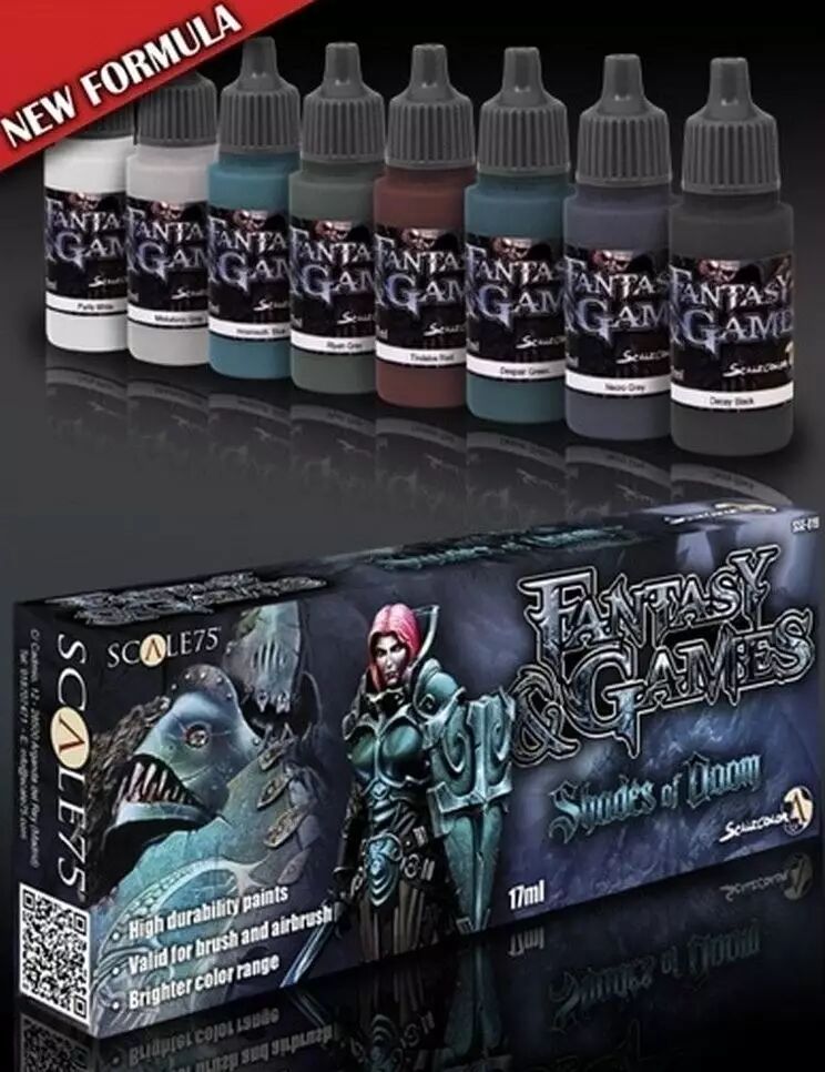 Réf. : S75-SSE-019 Le Shades of Doom Set de Scale 75 est pensé pour les amatrices et amateurs de figurines sombres, ténébreuses ou dramatiques. Ce coffret regroupe huit teintes profondes et puissantes, parfaites pour réaliser des ombrages, booster les contrastes et créer des effets visuels frappants sur tout type de miniature fantasy ou gothique.