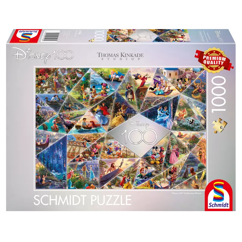 Ce puzzle Schmidt illustre les 100 ans du sutdio Disney, librement interprété par le célèbre artiste peintre Thomas Kinkade.