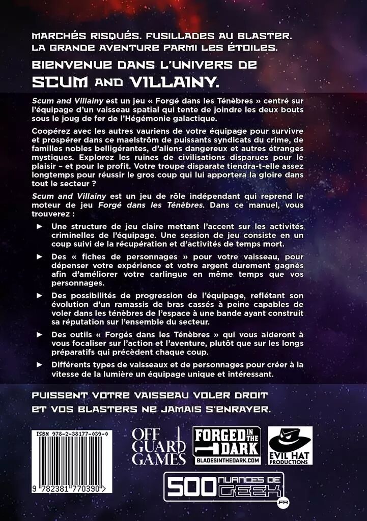 Scum and Villainy est un RPG stand-alone basé sur le système de jeu Forged in the Dark. Dans ce livre, vous trouverez