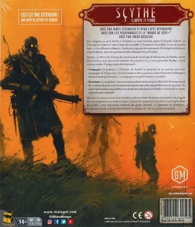 Réf. : MATSCY012459 Ascension et chute... Scythe Le Réveil de Fenris est la conclusion d'une trilogie d'extensions pour Scythe. Elle offre aux joueurs une campagne de 8 scénarios entièrement rejouable et réinitialisable. Le contenu sera enrichi de 11 nouveaux modules différents pour vous permettre de créer votre combinaison. Ces modules sont compatibles avec les deux autres extensions.