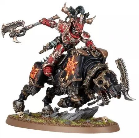 Le Seigneur Invocatus est un maître des raids éclair, des contre-attaques dévastatrices et des stratégies de harcèlement impitoyables. Également connu sous le nom d'Éclair de Khorne, ce maraudeur né fend les airs comme s'il chevauchait sur la terre ferme, monté sur le dos de son énorme Juggernaut Khal'guruth. Consacré au service du Dieu du Sang, le Seigneur Invocatus mène ses bandes d'un champ de bataille à l'autre à une vitesse surnaturelle en cherchant à répandre toujours plus de sang.