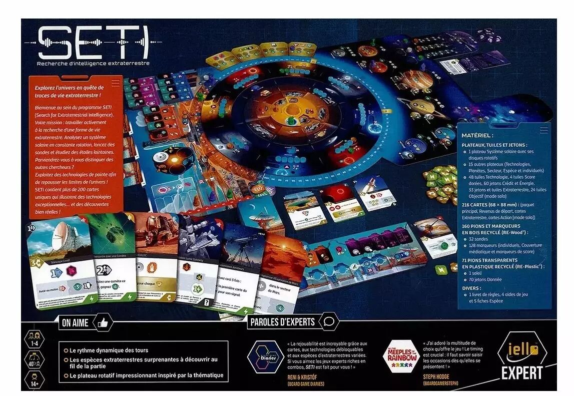 SETI: À la Recherche de la Vie Extraterrestre, un eurogame pour 1 à 4 joueurs, vous dirigez une institution scientifique chargée de rechercher des traces de vie au-delà de la planète Terre. Le jeu s'inspire des technologies et efforts actuels ou émergents dans l'exploration spatiale.