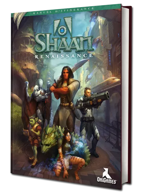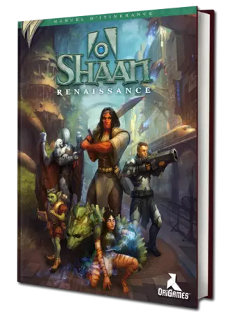 Le Manuel d'itinérance est un livre en couleur de 416 pages en couverture cartonnée qui contient le nécessaire pour commencer à jouer dans l'univers de Shaan :