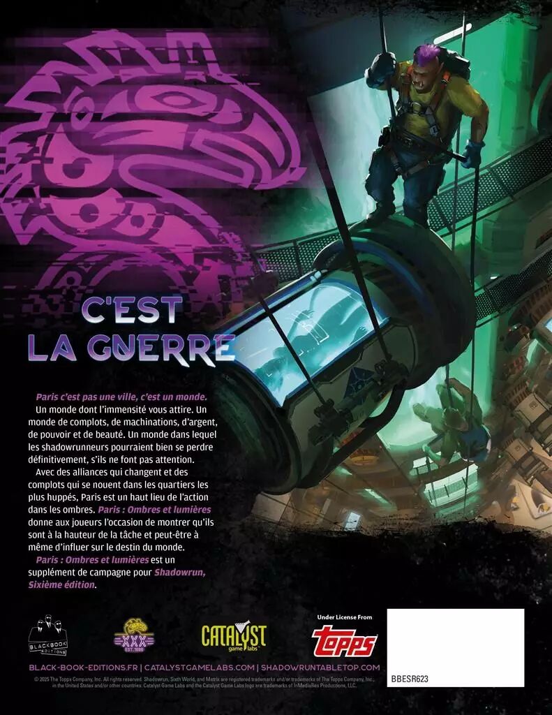 Où s'insère-t-il dans la gamme ? Ce supplément fait partie de la gamme française de Shadowrun 6. Il s'agit d'une création originale française (pour la version originale de l'ouvrage) qui vient enrichir l'univers de jeu en offrant un terrain d'action local et détaillé. Pour utiliser ce livre, vous aurez besoin du Livre de Règles : Shadowrun Sixième Édition.
