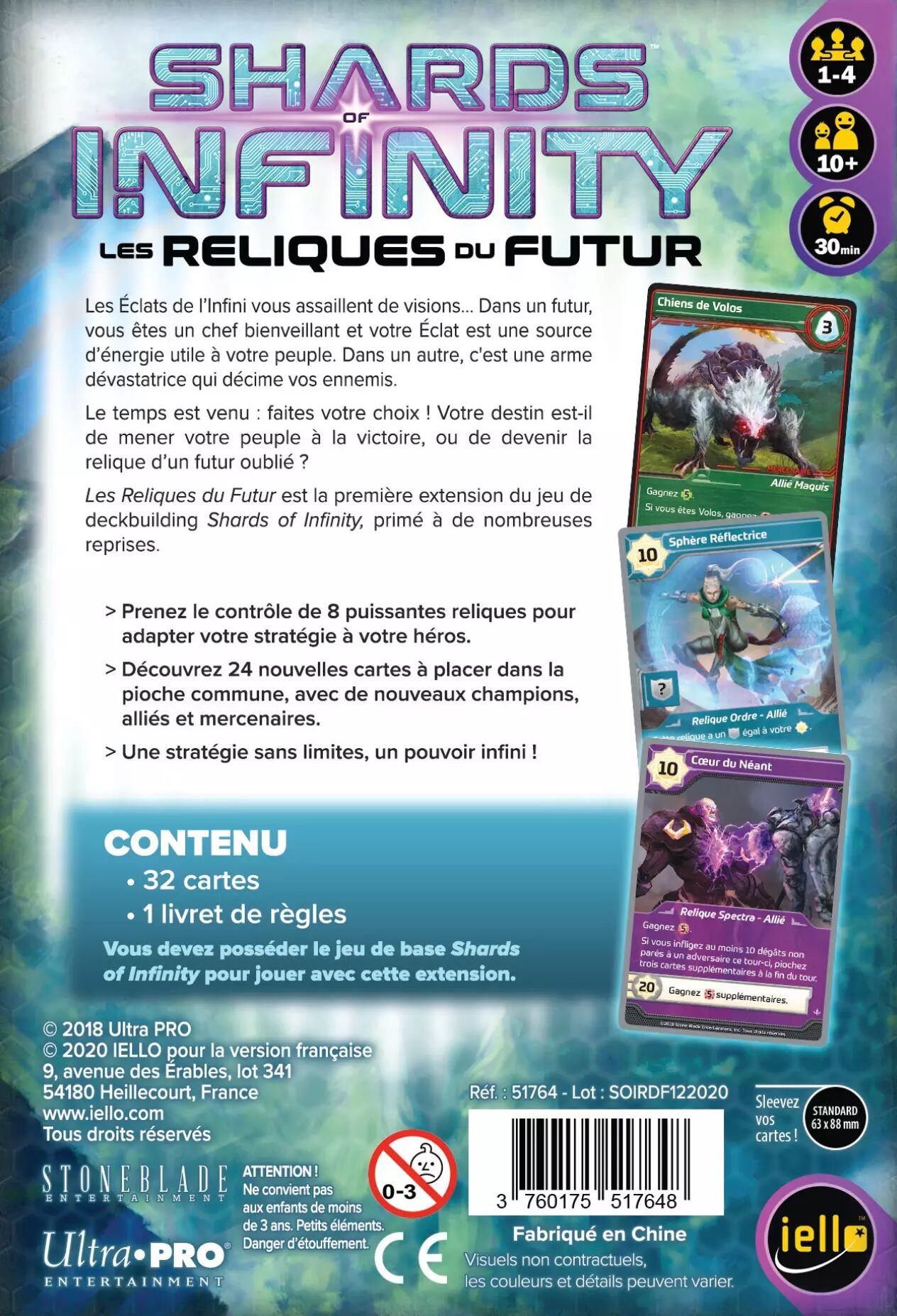 Réf. : 51764 Shards of Infinity: Les Reliques du Futur est la première extension du jeu Shards of Infinity comprenant trois nouvelles façons de jouer : un mode à trois joueurs, un mode équipe 2v2 et un mode solitaire complet.