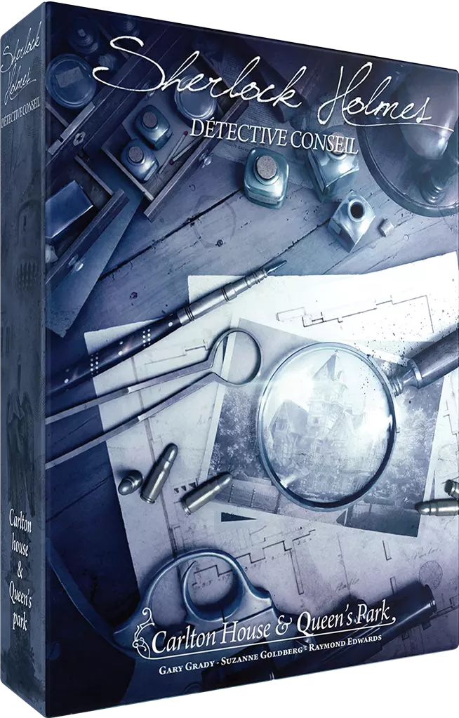 Sherlock Holmes Détective Conseil - Carlton House & Queen's Park est la troisième boîte de la gamme, après les boîtes « Meurtres de la Tamise & autres Enquêtes » (idéale pour débuter) et « Jack l'Eventreur & Aventures à West-End ».