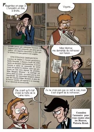 Incarnez le détective Holmes ou le docteur Watson, quadrillez les lieux grâce à la carte de la ville, traquez les indices, interrogez des témoins et jouez de vos talents de déduction. Faites les bons choix pour résoudre ces trois enquêtes, car le héros, c’est VOUS !