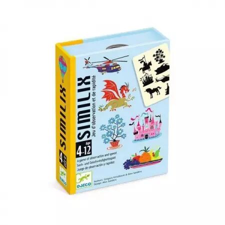 Réf. : DJ05087 Similix est un jeu d'observation et de rapidité qui invite deux à cinq joueurs à retrouver la carte silhouette correspondant à la carte illustrée. Observation, concentration et rapidité seront les ingrédients nécessaires pour être le premier à retrouver la carte et décrocher la victoire. Mais attention aux pièges : similaire ne veut pas dire identique !