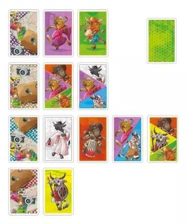 Variante 2 (7 ans et plus): Les joueurs doivent poser leur carte sur une carte déjà présente dans la rangée, en respectant la même race de vache.